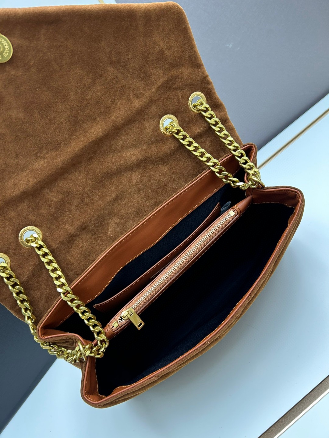 • Saint Laurent LOULOU Quilted Suede Bag