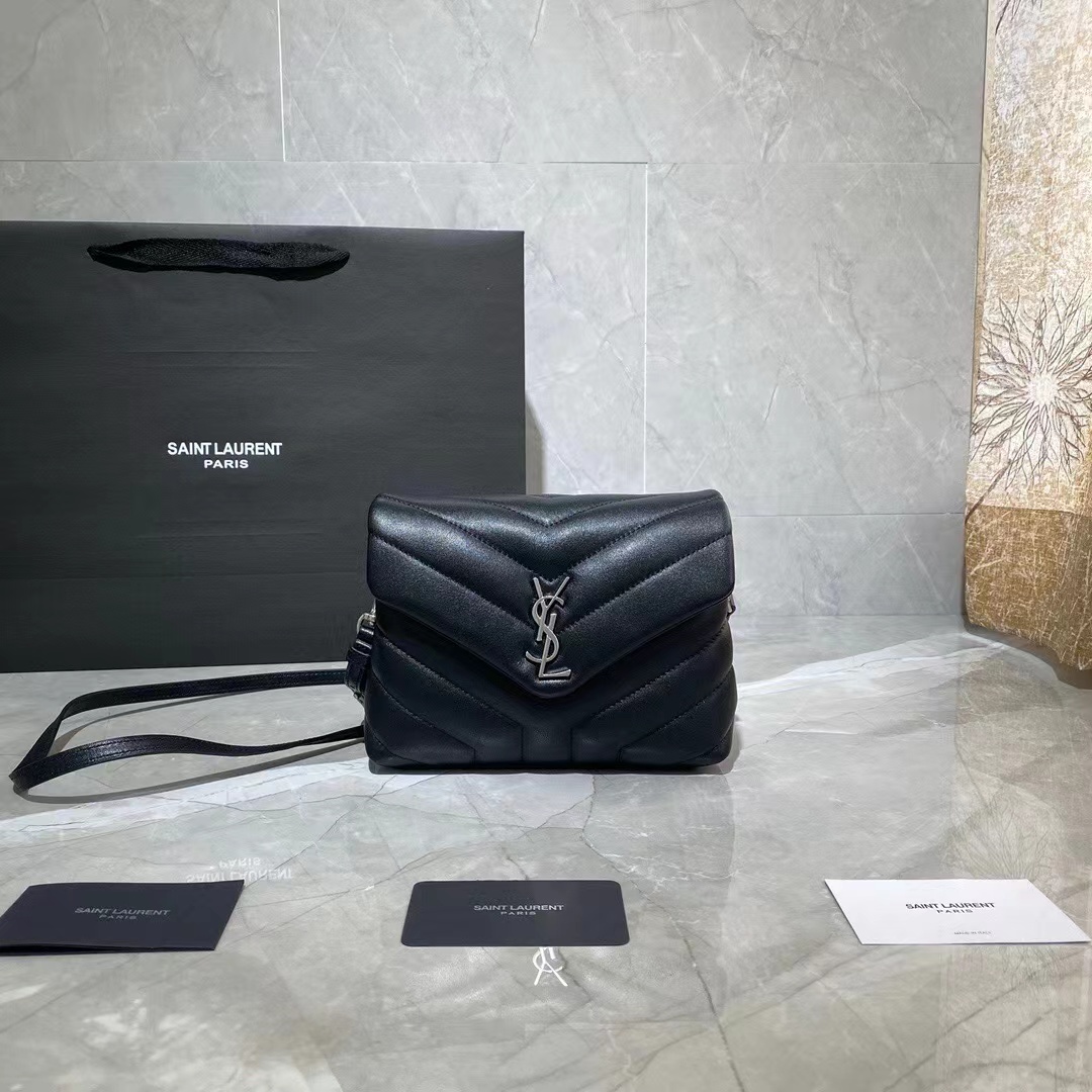 LOULOU handbag decorated with signature diamond quilting. Lightweight and practical, it features two compartments. Featuring an adjustable and removable leather shoulder strap for versatile accessorizing.