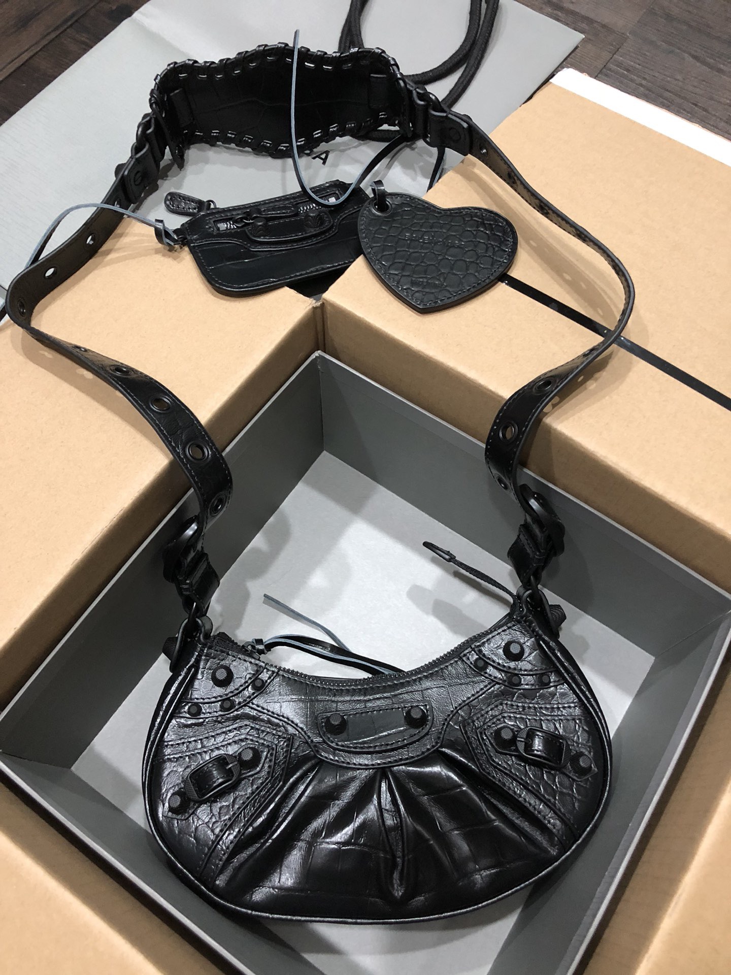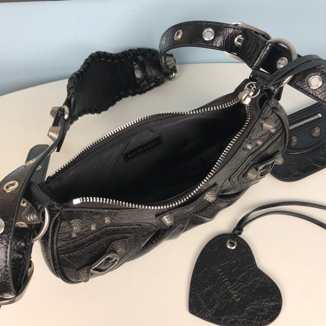 BALENCIAGA Le Cagole Small Studded Crinkled-leather Shoulder Bag