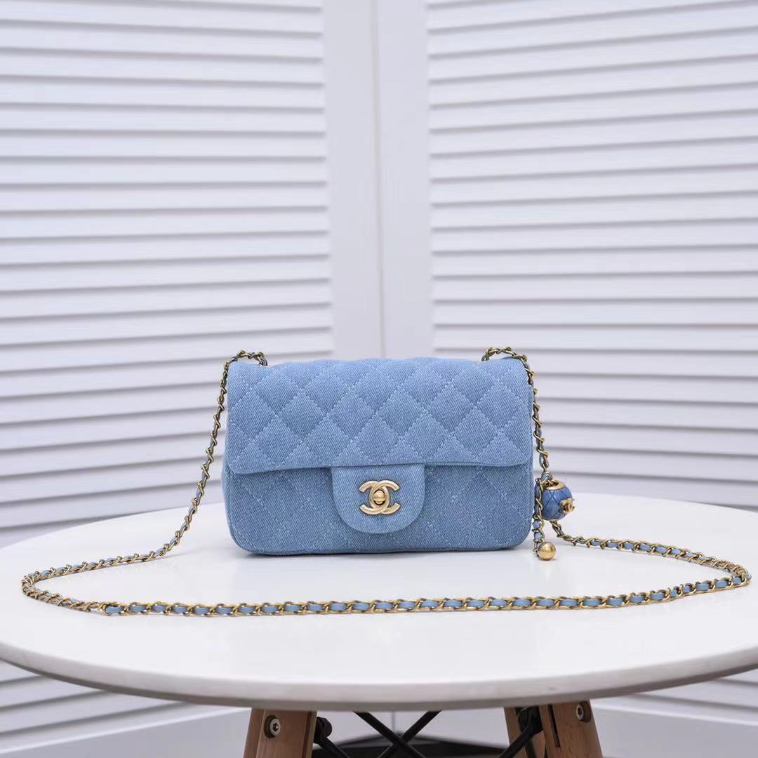 Chanel Classic Flag Bag Quilted Denim 20CM