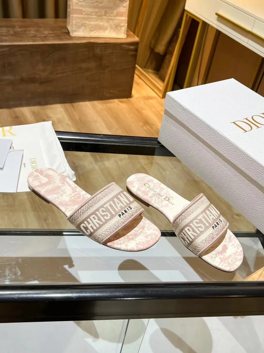 Dior Embroidered Sandals Slingback Flat Mules Pump Pink