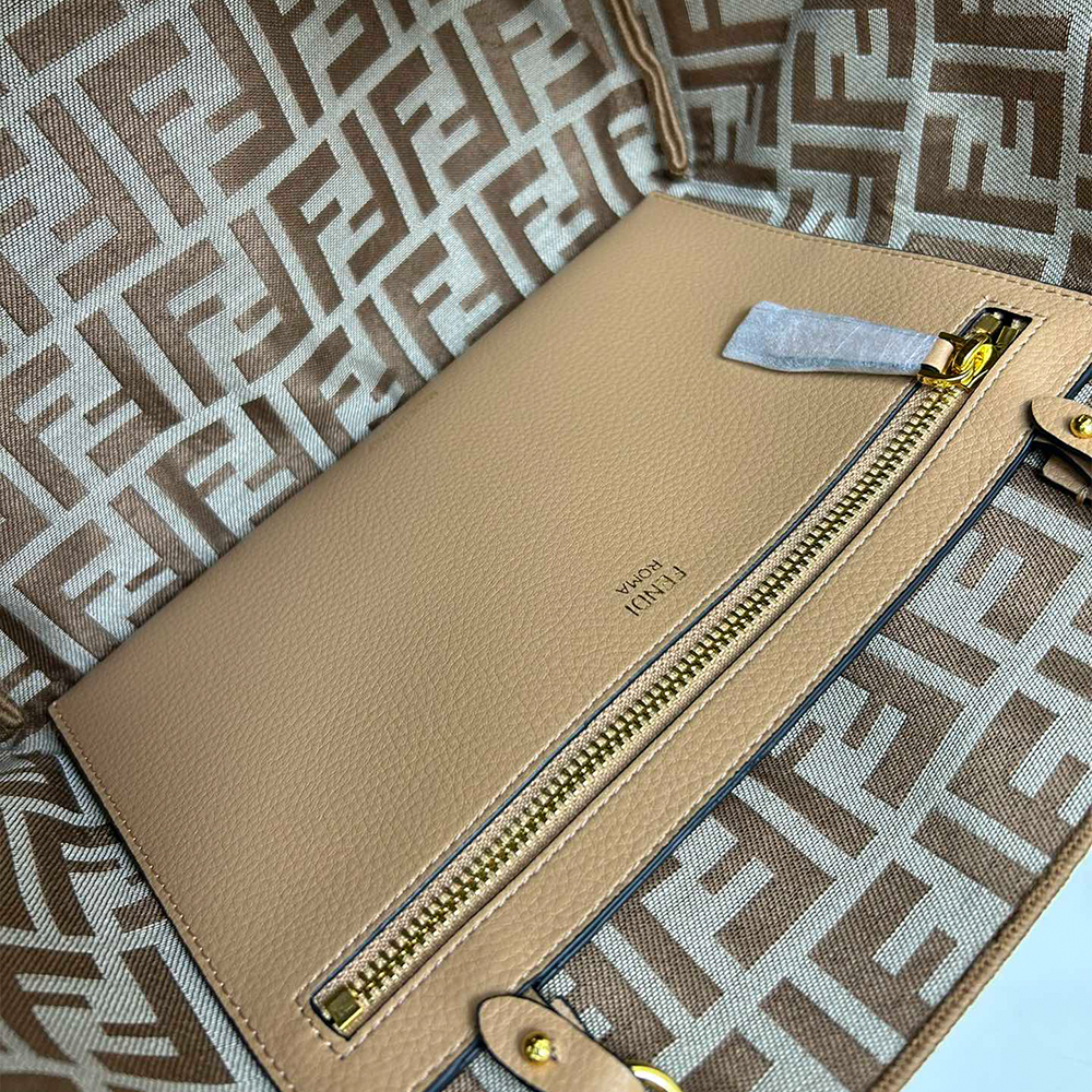 It has a removal inner zip pocket in beige leather and gold-finish metalware.