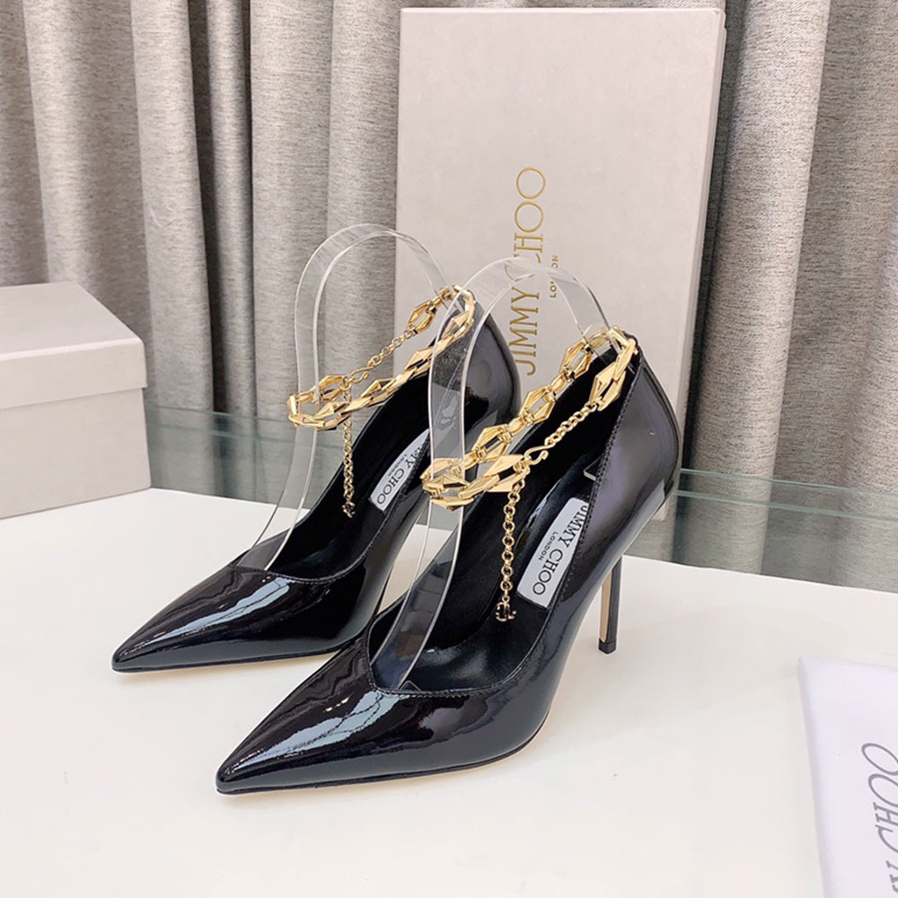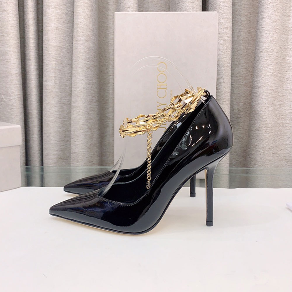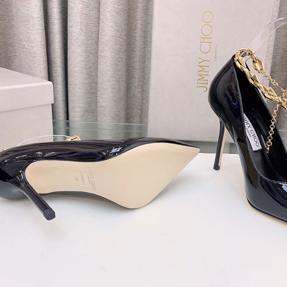 Jimmy Choo Talura Patent Leather Chain 10CM Slim Heel Slide Sandal