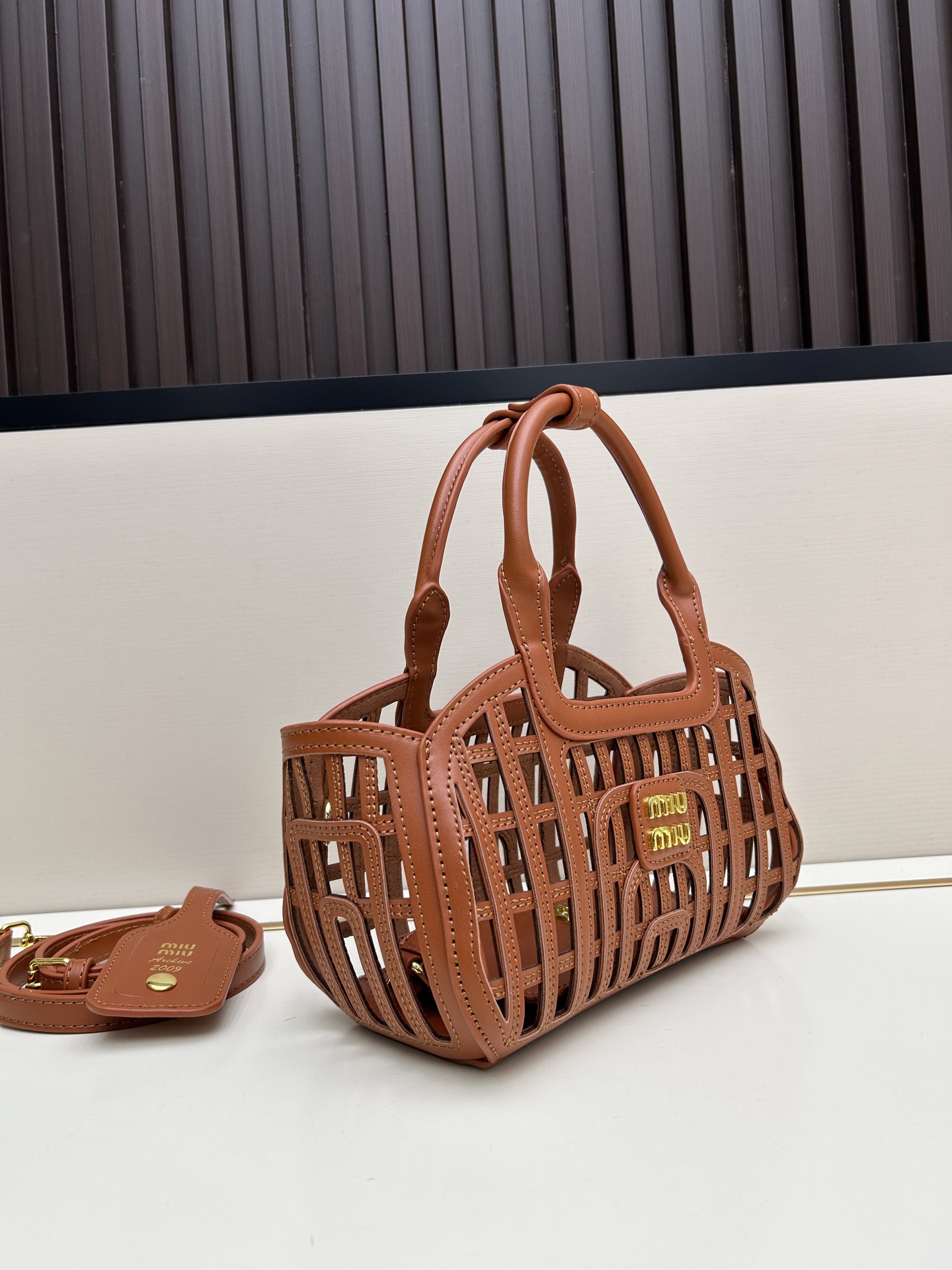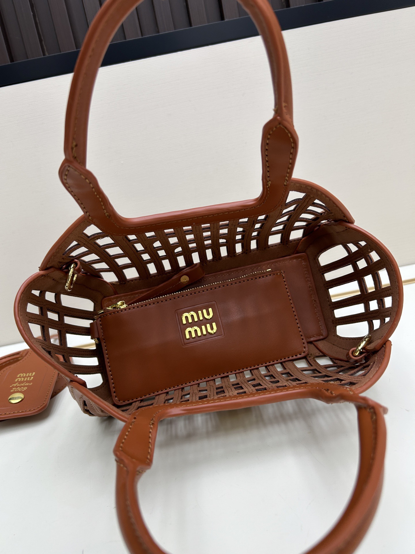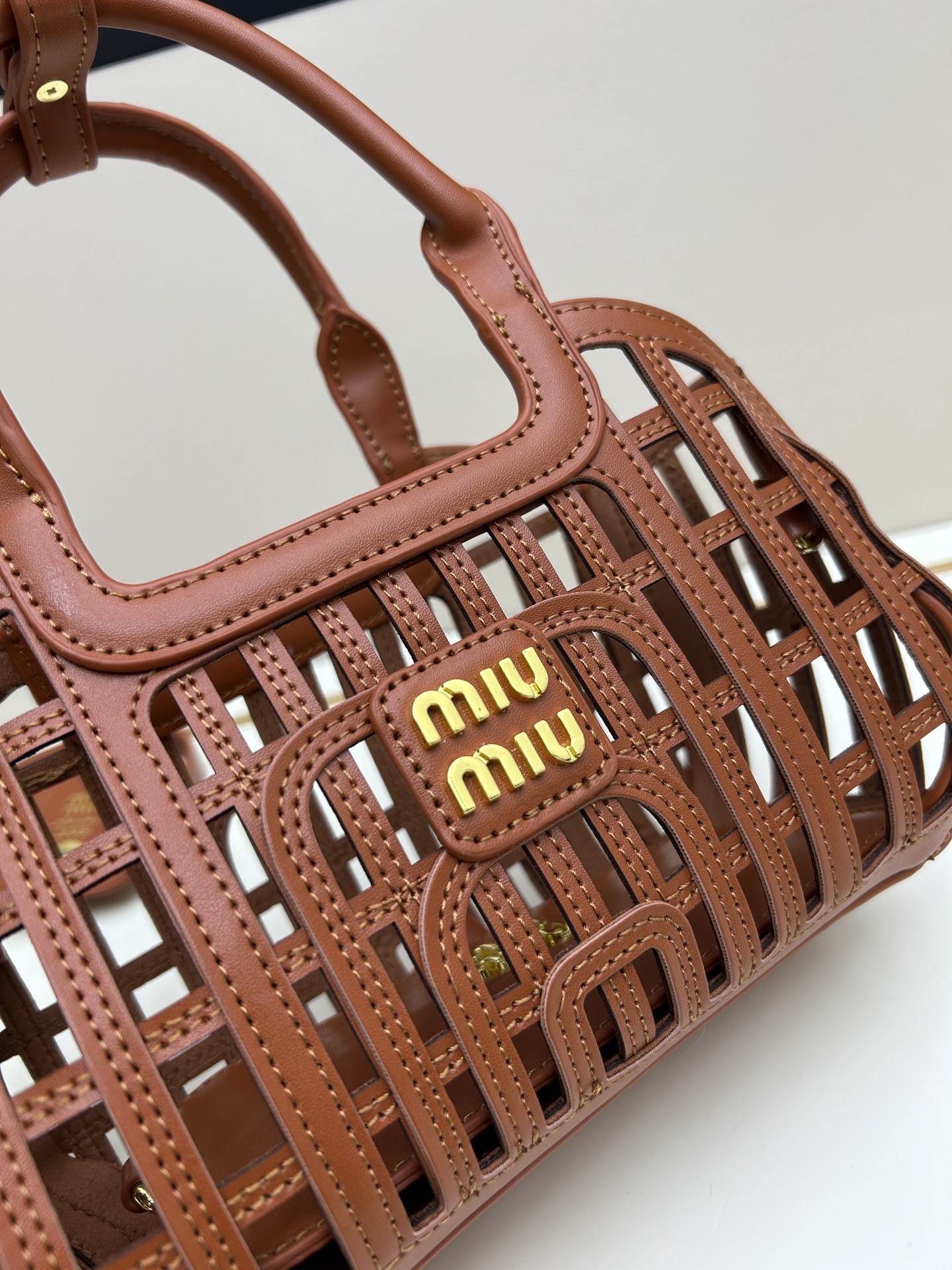 Miu Miu New Leather-Braided Openwork Bag