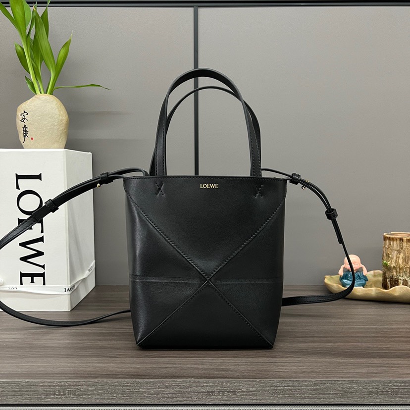 The Puzzle Fold Tote takes the iconic bag’s signature geometric lines and reimagines them in graphic and architectural panels that allow the bag to fold completely flat, making it the perfect travel companion. Soft, lightweight and inventively crafted, it is finished with discreet LOEWE branding. This mini version is crafted in shiny calfskin.