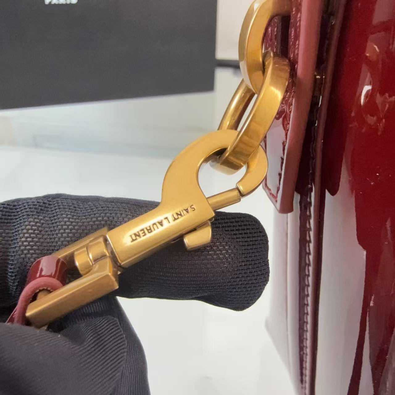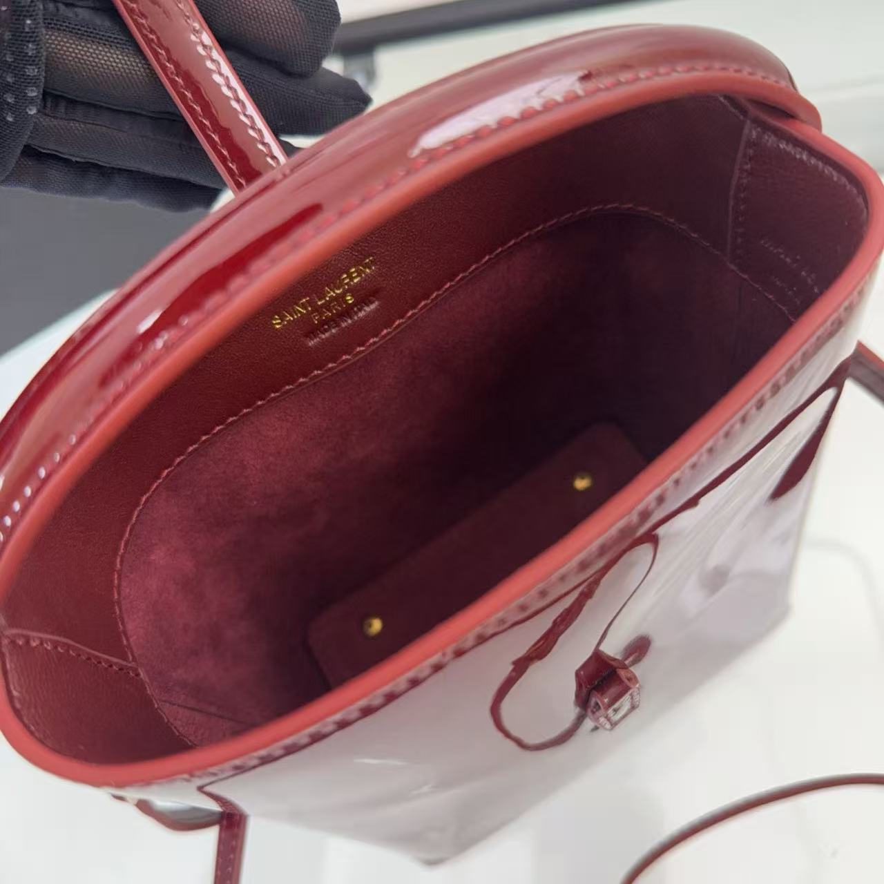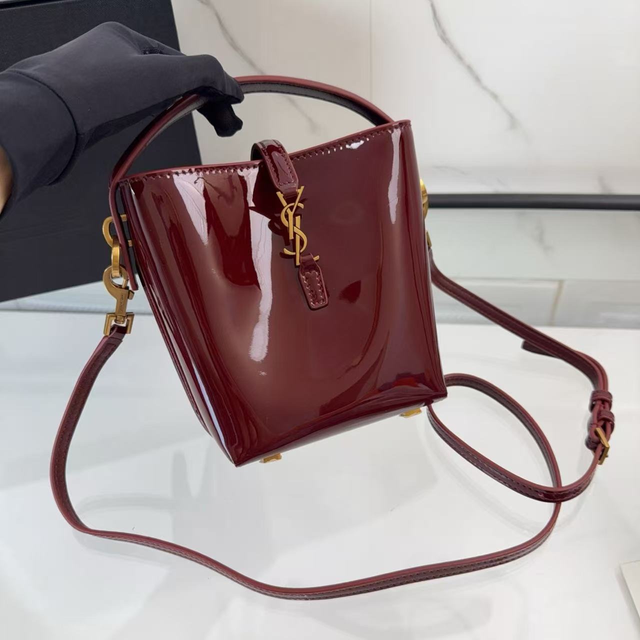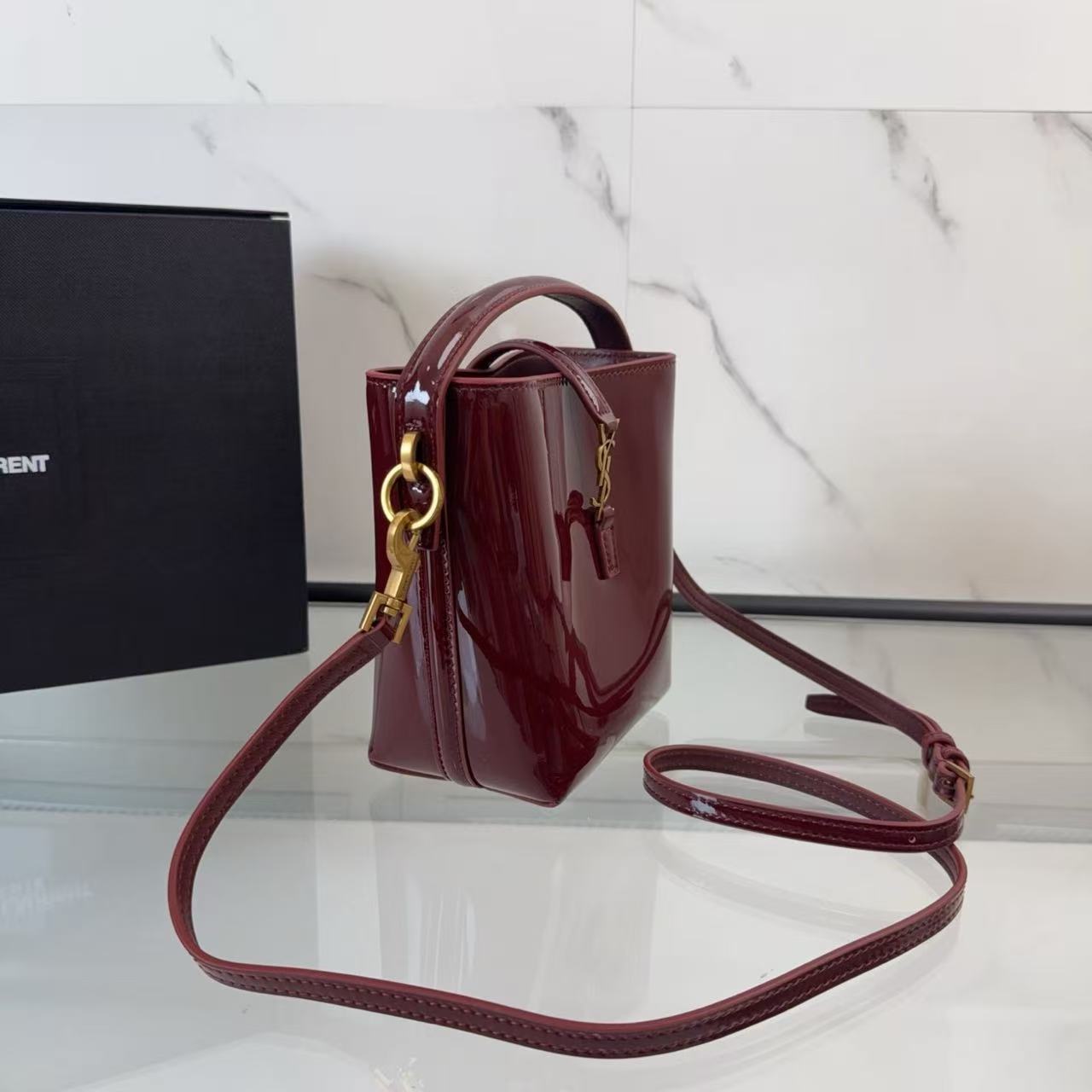 YSL LE 37 Mini in Patent Leather in Bordeaux