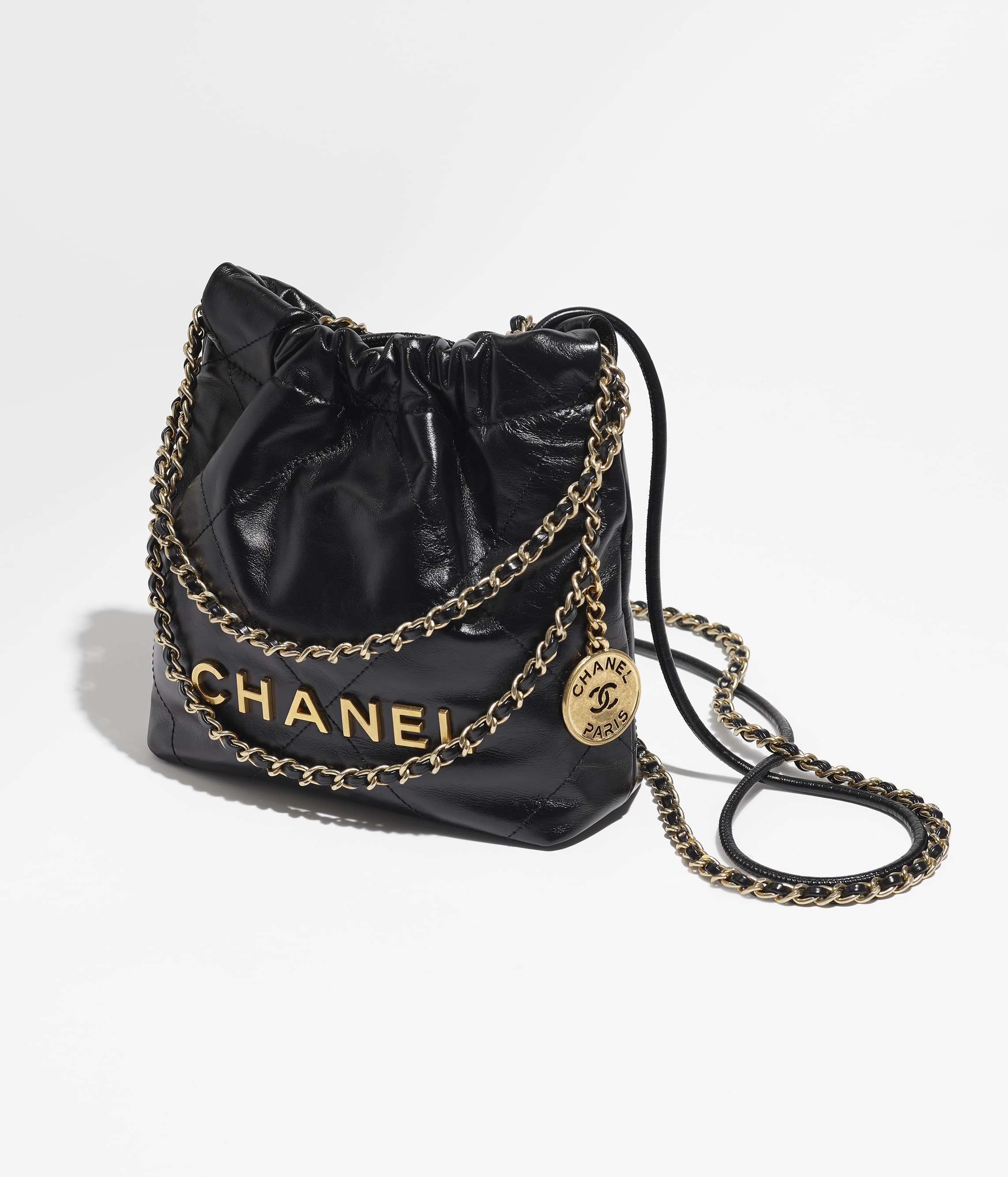 CHANEL 22 MINI HANDBAG Shiny Calfskin & Gold-Tone Metal Black