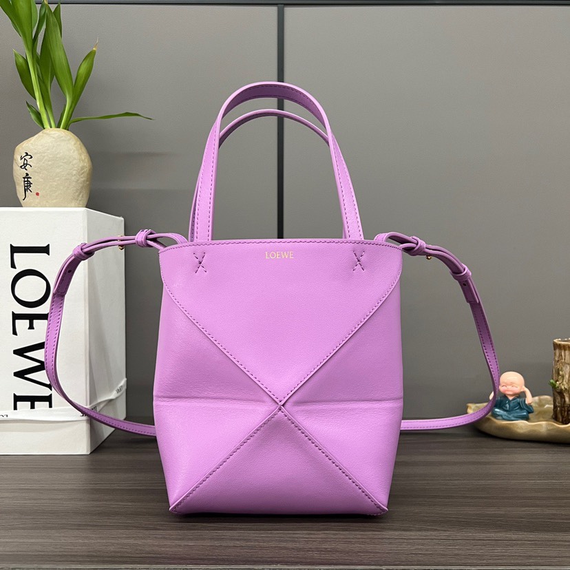 The Puzzle Fold Tote takes the iconic bag’s signature geometric lines and reimagines them in graphic and architectural panels that allow the bag to fold completely flat, making it the perfect travel companion. Soft, lightweight and inventively crafted, it is finished with discreet LOEWE branding. This mini version is crafted in shiny calfskin.