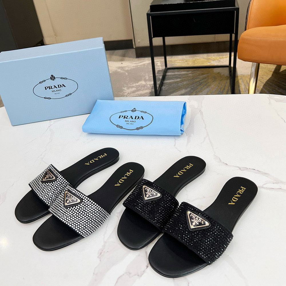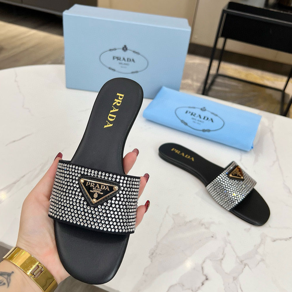 Prada Band Drill Comfortable Flat Sandals Slide