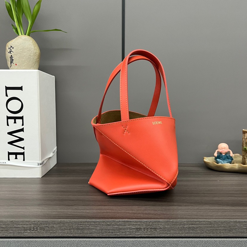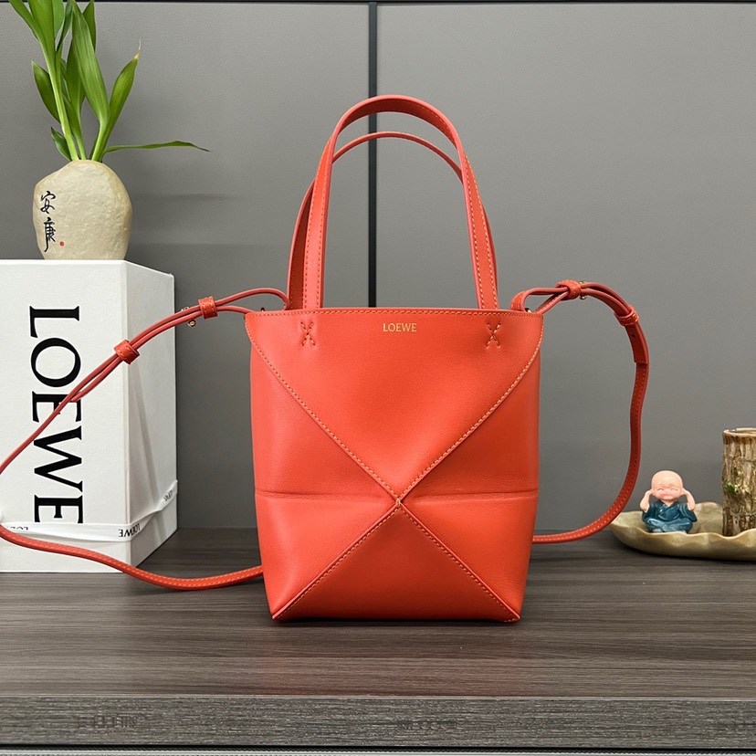 The Puzzle Fold Tote takes the iconic bag’s signature geometric lines and reimagines them in graphic and architectural panels that allow the bag to fold completely flat, making it the perfect travel companion. Soft, lightweight and inventively crafted, it is finished with discreet LOEWE branding. This mini version is crafted in shiny calfskin.