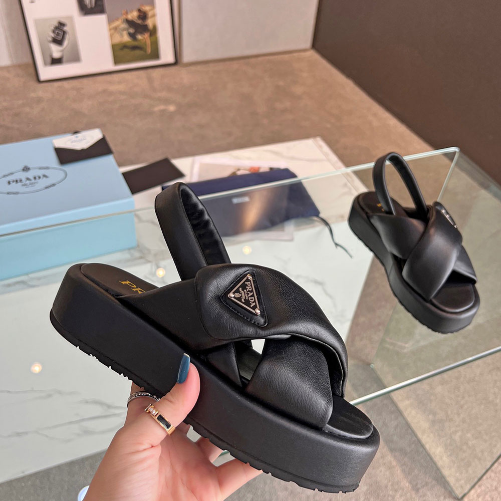 Prada Leather Peep-toe Beach Sandals Slide